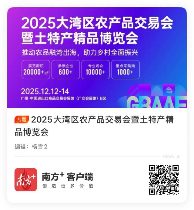 2025大湾区农产品交易会暨土特产精品博览会(简称“大湾区农交会”)将于12月12日-14日在广东·广州广交会展馆B区盛大启幕!
