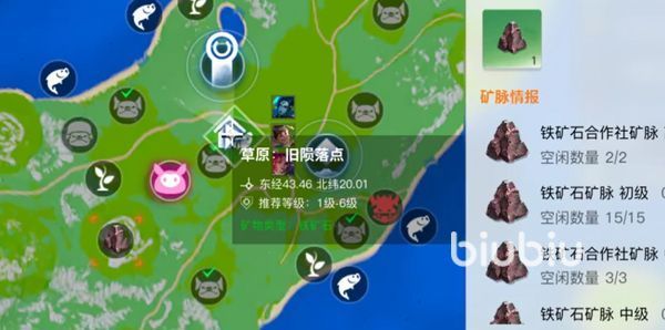 全部解锁之后再点开地图,在地图上寻找矿物资源,然后在地图上找到矿脉,而矿脉又分为初级,高级和中级,不同等级采集速度也是不一样的,其中最高级的矿脉一分钟可以采集两块,初级的一分钟则是1.4块,终极的是一分钟1.7块。
