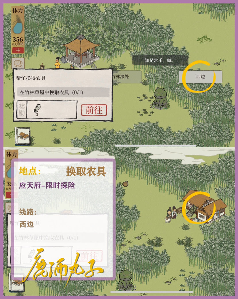 3、林北略最后选择西边,江南即可在竹林草屋换取农具。百景边攻