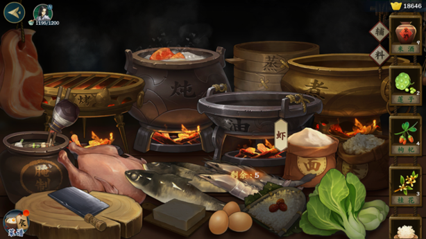 制作葵花斩肉的材料很简单,就是虾,鸡蛋,井水和猪肉。虾和鸡蛋可以通过在游戏地图上采集,或者是做主线及支线任务得到,另外在杂货商的地方,通过刷新也可以刷到虾和鸡蛋,水和猪肉可以直接在附近的烹饪商人处购买。
