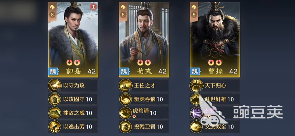 那么如果大家在游戏当中不太喜欢生蜀国类型的各类武将效果的话,其实大家也可以选择魏国这个国家,作为第一个选择使用的国家阵容能力,今天为大家介绍的这个魏国阵营当中,其实大家走谋略类型的效果带来的能力才会更强一些,比如说以上大家可以用到的魏国国家阵容可以用荀彧、曹操的搭配,而郭嘉的能力也可以搭配这个体系,在整体技能效果当中,他们带来的大部分效果其实虽然是谋略类型的加成,但是总体用起来的话,他们的输出也是综合不差的。