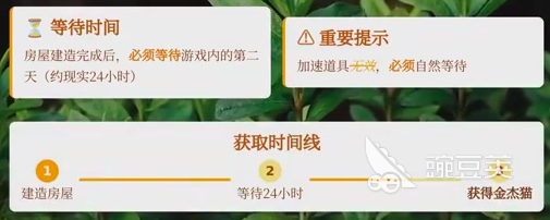 最后需要注意在房屋开始建造完成后,大概需要花费24小时才能够完成金杰猫房子的整体建立,需要提醒玩家的是,加速道具在这里是无效的,必须要自然等待,才能获得金杰猫并解锁它的房间。