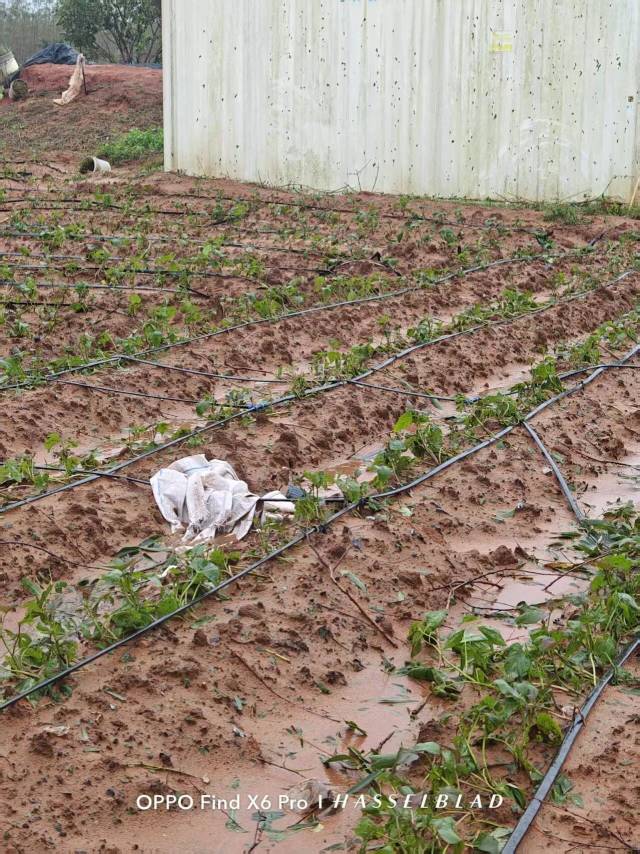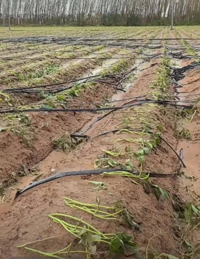 “目前村里停水停电停网,什么事情都做不了,只能在家里干着急。大风吹得地里的滴管乱成一团,后续要安排工人重新弄,这又是一笔费用支出。还有一方面,地垄被接连的雨水打得很结实,导致土壤不够透气,后续需要重新扶垄。”伍哥着急地告诉记者。