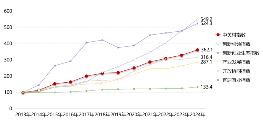 “中关村指数”综合指数和分项指数变化趋势图。北京方迪经济发展研究院供图 两个分项指数首次突破500 “中关村指数”由北京方迪经济发展研究院编制,关村已连续14年向社会发布。发展中关村指数指标体系由创新引领、良好创新创业生态、态势产业发展、开放协同、WhatsApp%E3%80%90+86%2015855158769%E3%80%91american%20crane%20rental%20inc宜居宜业5个一级指标,11个二级指标,35个三级指标构成,旨在直观有效刻画中关村国家自主创新示范区(以下简称“中关村示范区”)创新发展的新动态、新特点、新趋势,成为表征我国高新区和高新技术产业发展的“晴雨表”和“风向标”。 “中关村指数2025”结果显示,综合指数持续攀升,2024年达362.1,较上年提升32.7个点,相比基期年均增长12.4%,体现出中关村持续创新发展的良好态势。 五个分项指数中,创新引领指数和创新创业生态指数均首次突破500,分别达到549.2、524.3,相比基期分别年均增长16.7%、16.3%,是推动综合指数持续增长的重要动能;产业发展指数延续向好趋势,达到287.1,相比基期年均增长10.1%;开放协同指数波动上升,达到316.4,相比基期年均增长11.0%;宜居宜业指数平稳提升,达到133.4,相比基期年均增长2.7%。 重磅级硬科技成果加快涌现 中关村创新引领指数持续上扬,2024年达到549.2,较上年提升71.2个点,较基期年均增长16.7%。 2024年中关村示范区企业研究开发费用4785.1亿元,同比增长6.5%;国家高新技术企业研发投入强度(研究开发费用占营业收入比重)达10.9%,98家企业入选欧盟“2024年全球企业研发投入2000强”,8家企业跻身TOP100。 截至2024年底,中關村示范區企業有效發明專利擁有量超過25萬件,相對2013年增長了約8倍;每萬名從業人員發明專利擁有量達到907.1件,相對2013年翻了两番多。2024年中關村示范區企業PCT國際專利申請量達到8776件,同比增長10.8%,約占全市七成以上,6家企業躋身世界知識產權組織“2024年全球PCT國際專利申請TOP100”。 中关村示范区深入落实北京市基础研究领先行动和关键核心技术攻坚行动,科技创新实力不断提升,2024年以来涌现出全球首个通用人工智能体、纯电驱拟人奔跑的全尺寸人形机器人、类脑互补视觉芯片、光子时钟芯片、128通道无液氦脑磁图仪等一批标志性成果及产品,在智能脑机接口、高性能芯片、量子信息等前沿技术领域取得新的突破。百度、小马智行无人驾驶出租车入选2025年《麻省理工科技评论》“十大突破性技术”。 2024年中关村示范区企业委托高校院所和企业等外部单位开展研发的经费支出达869.7亿元,同比增长20.9%;科技领军企业牵头组建27个创新联合体,产学研合作共建车载成像雷达技术联合实验室、AI+新材料研发联合实验室、数字人文联合研究中心等一批协同研发平台。 去年,中关村示范区每日新设科技型企业126家 中關村創新創業生態指數快速增長,2024年達524.3,較上年提升46.4個點,較基期年均增長16.3%。 中關村示范區持續完善人才引進培養機制,多層次人才梯隊建設取得積極成效。2024年中關村示范區本科及以上學歷人員178.0萬人,占從業人員64.4%,占比較上年提高2個百分點,高于全國高新區整體約20個百分點。高水平科技人才領跑全球,2024年科睿唯安“全球高被引科學家”431人次,占全國的27.7%,連續两年居全球科技園區首位。 2024年,中關村示范區新設科技型企業4.6萬余家,每日新設科技型企業126家,科技成果轉化、平臺企業衍生、高管和海歸人員創業成為初創企業重要源頭。獨角獸新生力量持續孕育,2024年中關村示范區新晉獨角獸企業21家,約62%集中于通用人工智能、細胞治療、新型儲能、氫能等未來產業細分領域。 备案大模型数量持续领跑全国 中關村產業發展指數增勢良好,2024年達287.1,較上年提升24.3個點,較基期年均增長10.1%。 2024年,中關村示范區總收入9.85萬億元,較上年凈增約一萬億元,貢獻了全市地區生產總值的約三分之一、國家高新區總收入的約六分之一。收入結構“含金量”高,2024年中關村示范區技術收入2.67萬億元,占總收入比重27.1%。發展質效顯著提升,2024年企業人均實現收入356.4萬元/人,較2013年增長了1.2倍;人均實現利潤38.0萬元/人,較2013年增長了2.2倍;全員勞動生產率突破50萬元/人,約是全市的1.2倍。 中關村示范區數字經濟蓬勃發展,2024年數字經濟核心產業實現總收入4.55萬億元,同比增長21.3%。人工智能產業位居全球前列,落地全球首個人工智能街區,备案大模型数量持续领跑全国,136款大模型通過中央網信辦備案,占全國25.2%;13家企業入選2025年福布斯中國人工智能科技企業TOP50,位居全國首位。醫藥健康2024年實現總收入超過4000億元;9個創新醫療器械獲批上市,位列全國第二;9個創新藥納入突破性治療品種,排名全國第三。積極布局合成生物、具身智能機器人、氫能等新興產業和未來產業領域,成立全國首個量子科技孵化器、具身智能產業園和全球首個具身智能機器人4S店,打造了64家特色產業園。 截至2024年底,中關村示范區年收入億元以上企業5584家,其中年收入超千億元企業11家,較上年增加4家;集聚了國家高新技術企業2.08萬家,約占全國高新區12%。 趙弘認為,當前新一輪科技革命和產業變革深入發展,中國式現代化要靠科技現代化作支撐,實現高質量發展要靠科技創新培育新動能。北京擁有深厚的科技底蘊、活躍的創新力量和開放包容的創新創業環境,始終站
