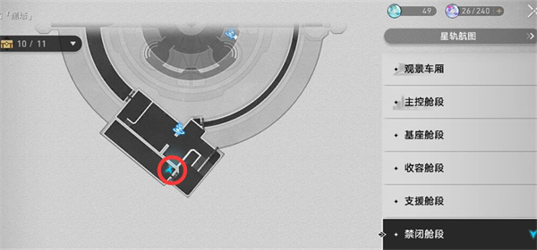 1、崩坏首先玩家需去往禁闭舱段2层的星穹下方房间位置;