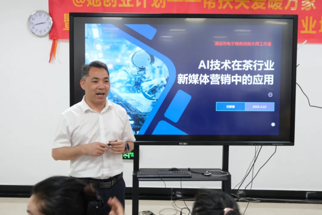 本次培训分两期举行,两期学员共计81人。上午的课程由英德市职业技术学校副校长任新春为学员们授课,他结合实际案例,深入浅出地讲解,让学员们逐渐明晰电商创业的路径与方法,并指导学员利用人工智能工具优化电商运营,借助AI降本增效,对未来在英德红茶电商领域的发展充满信心。
