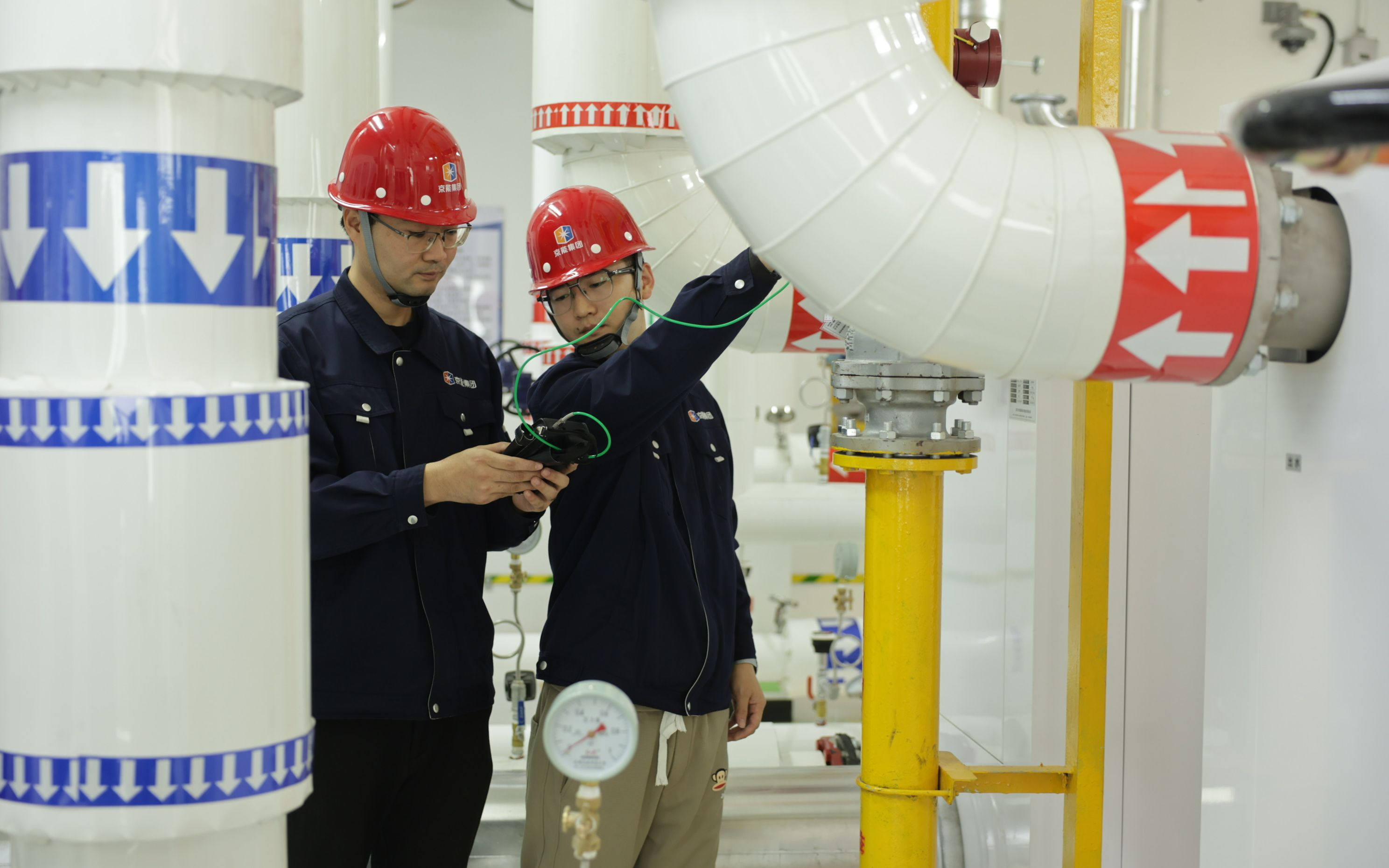 北京热力工作人员正在对供热设施进行巡检。新京报记者 王子诚 摄