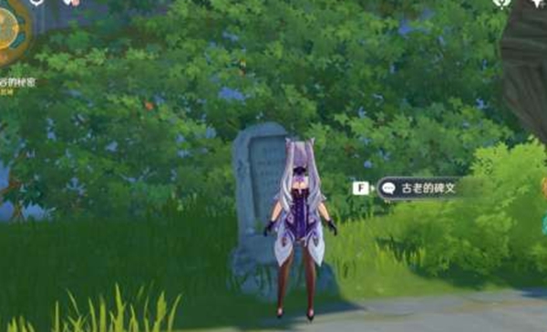 1、原神首先先来到下图位置,天遒到达后需找到蓝色竹子后的谷解石碑,阅读并触发任务;