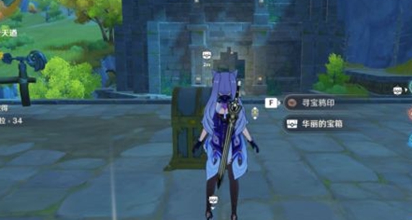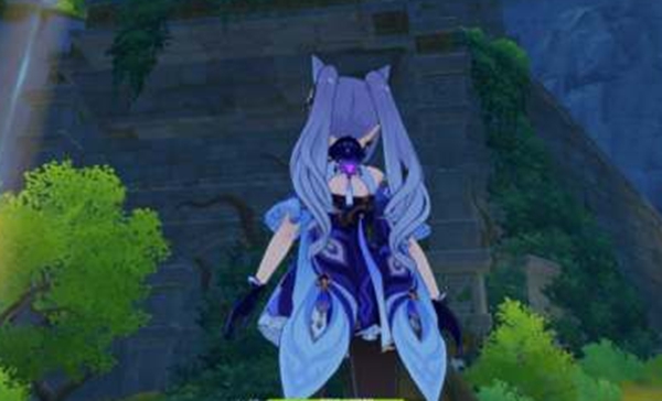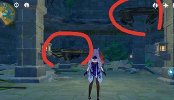 4、随后来到第三个塔的位置,此时玩家需带着刻晴或岩系角色,然后在规定时间内来到第三层并利用台子跳上去,即刻晴E,或岩系角色E垫脚上去;