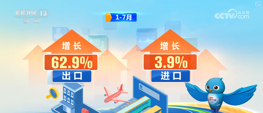 2025年,我国服务贸易稳步增长,旅行服务出口增长最快。1—7月,旅行服务进出口达12594.6亿元,增长10.4%。其中,出口增长62.9%、进口增长3.9%。