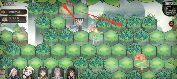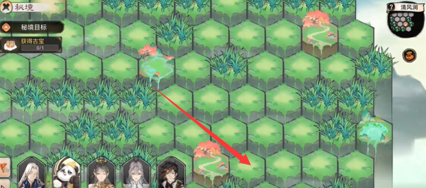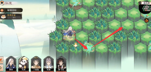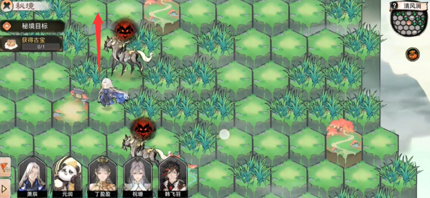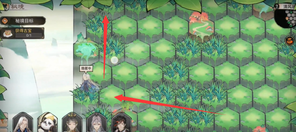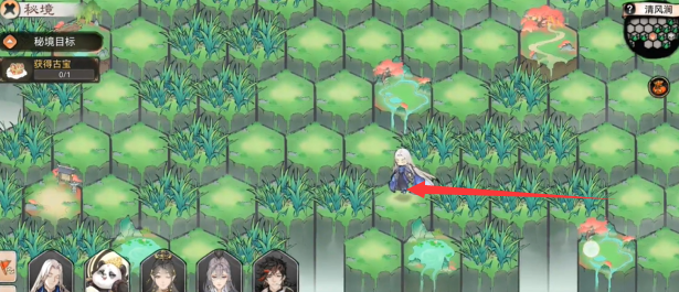 1、最强祖师开局先往下走两步,清风再往中间走进草丛;