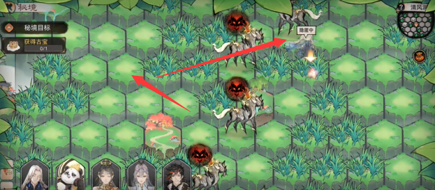 3、清风往上走,平原再往中间走吸引仇恨,最强祖师继续往下走;