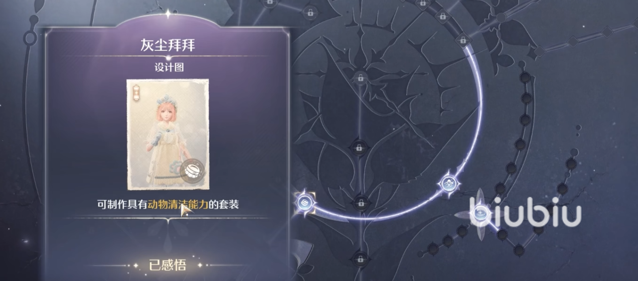 打开这个功能也是很简单,只需要大家点击初始键I键,进入心愿原野碎片界面。在这个界面下,大家可以用两颗星星就可以解锁出这个动物清洁套装,解锁之后退出,点击Y键制作灰尘拜拜,制作完成后,就变成被动技能。