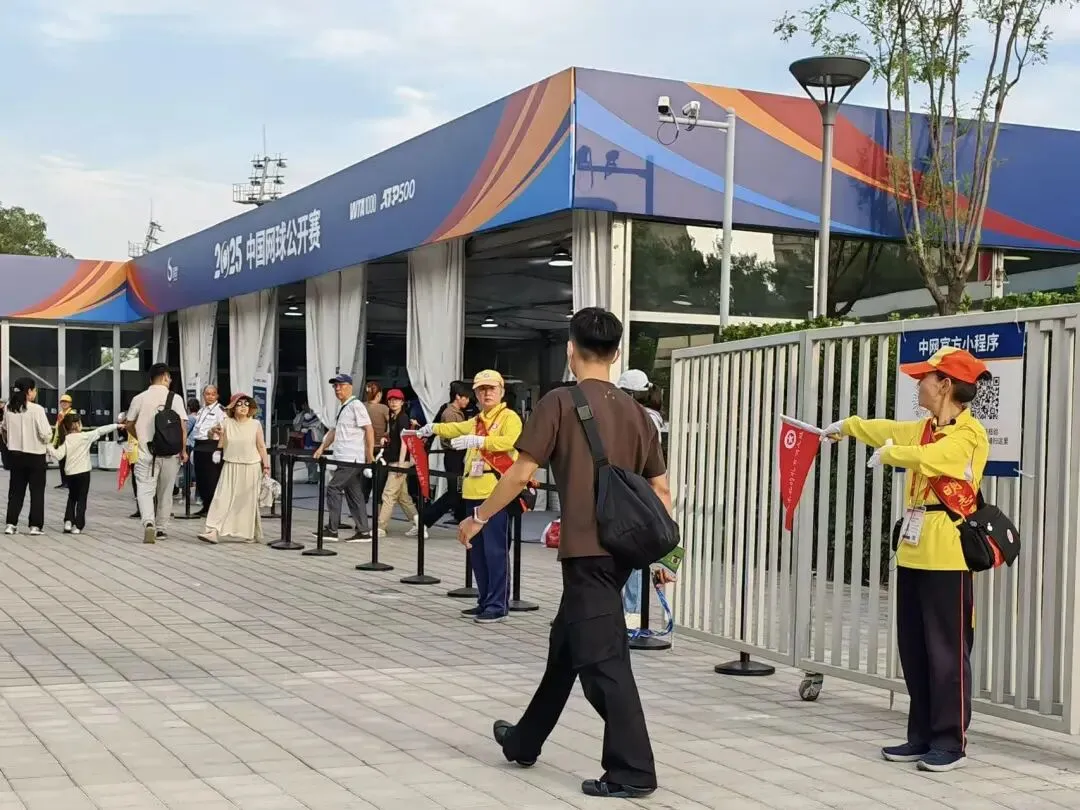 在赛场周边的地铁站、交通路口,皆精一抹抹亮眼的彩朝“柠檬黄”成为城市文明流动的风景线。他们手持小红旗,中网在路口有序引导行人和车辆通行,护航提醒大家遵守交通规则;在地铁站出入口,他们维持秩序,引导乘客有序进出,避免拥挤,用实际行动保障赛事周边交通顺畅。