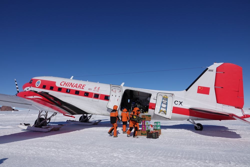 12月8日,“雪鹰601”飞抵格罗夫山区域,为内陆队员运输生活物资与科研设备。新华社记者 顾天成 摄