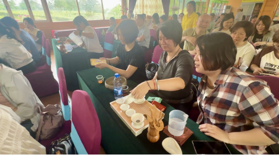 随后,茶艺师通过优雅的茶道表演,向嘉宾系统讲解了茶叶种类辨别方法、茶具使用、水温控制、品茶礼仪等知识,并指导嘉宾体验泡茶流程。