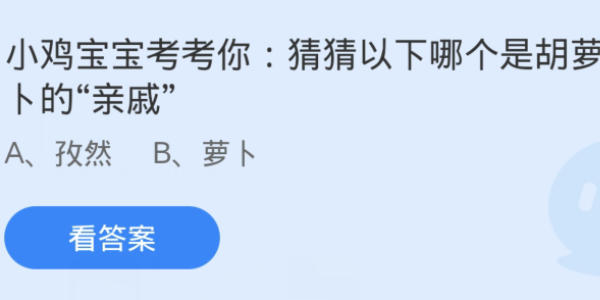 支付宝蚂蚁庄园小课12月28日的其中一个问题是:猜猜以下哪个是胡萝卜的亲戚?这道题考查的是关于对植物品种分类的知识,下面一起来看一下蚂蚁庄园12月28日的正确答案吧。蚂蚁庄园小课堂12月28日问题答案