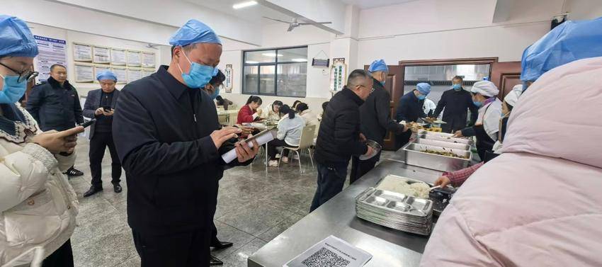 午餐时间,调研组“突击检查”了当日即将出锅的菜品,并于中午时分在食堂与学生一同排队用餐,每位代表都按照每人10元的标准扫码付费,亲身体验餐食的色泽、口味、温度及分量。用餐间隙,代表委员们与学生和老师们进行了亲切交流,直接倾听来自用餐者最真实的声音和诉求。