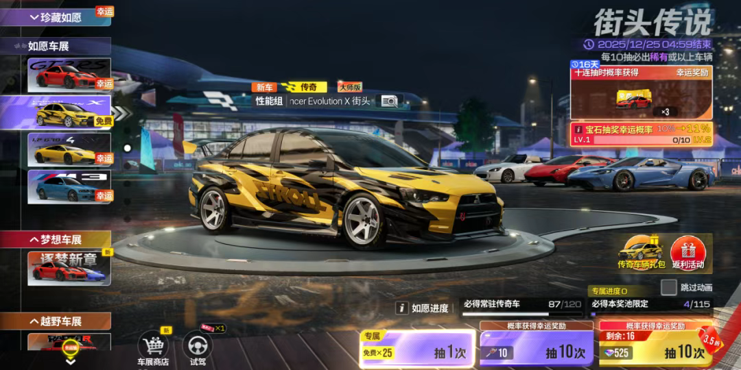 街头传说现已正式登场!免费抱走三菱 Lancer Evolution X 街头传说 '10的机会,车手们千万别错过~